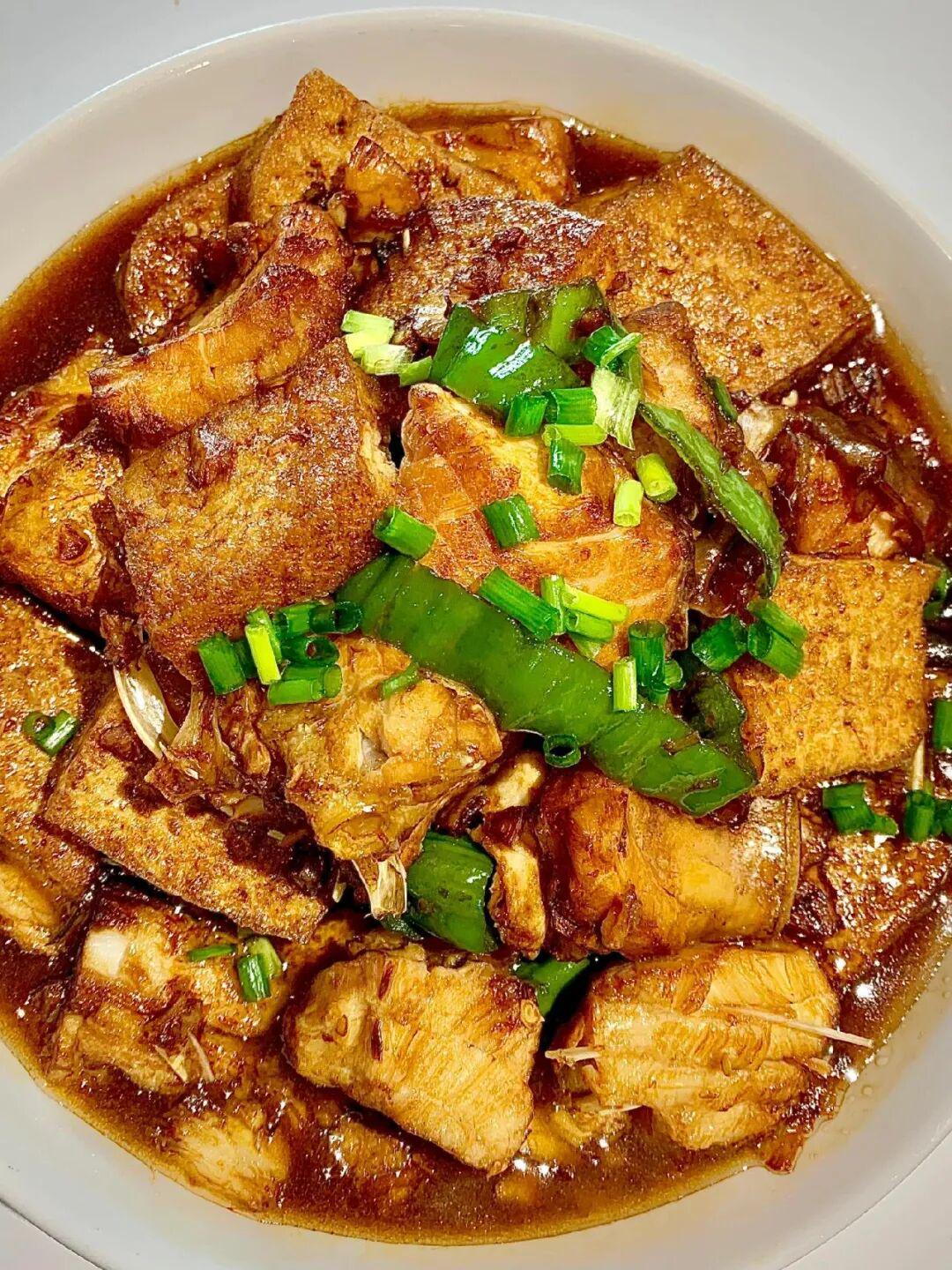 1、准备一条草鱼,处理干净后改刀剁成小块。准备一块大豆腐,改刀切成小块。起锅烧油,油热下入豆腐,煎至两面金黄,盛出备用。