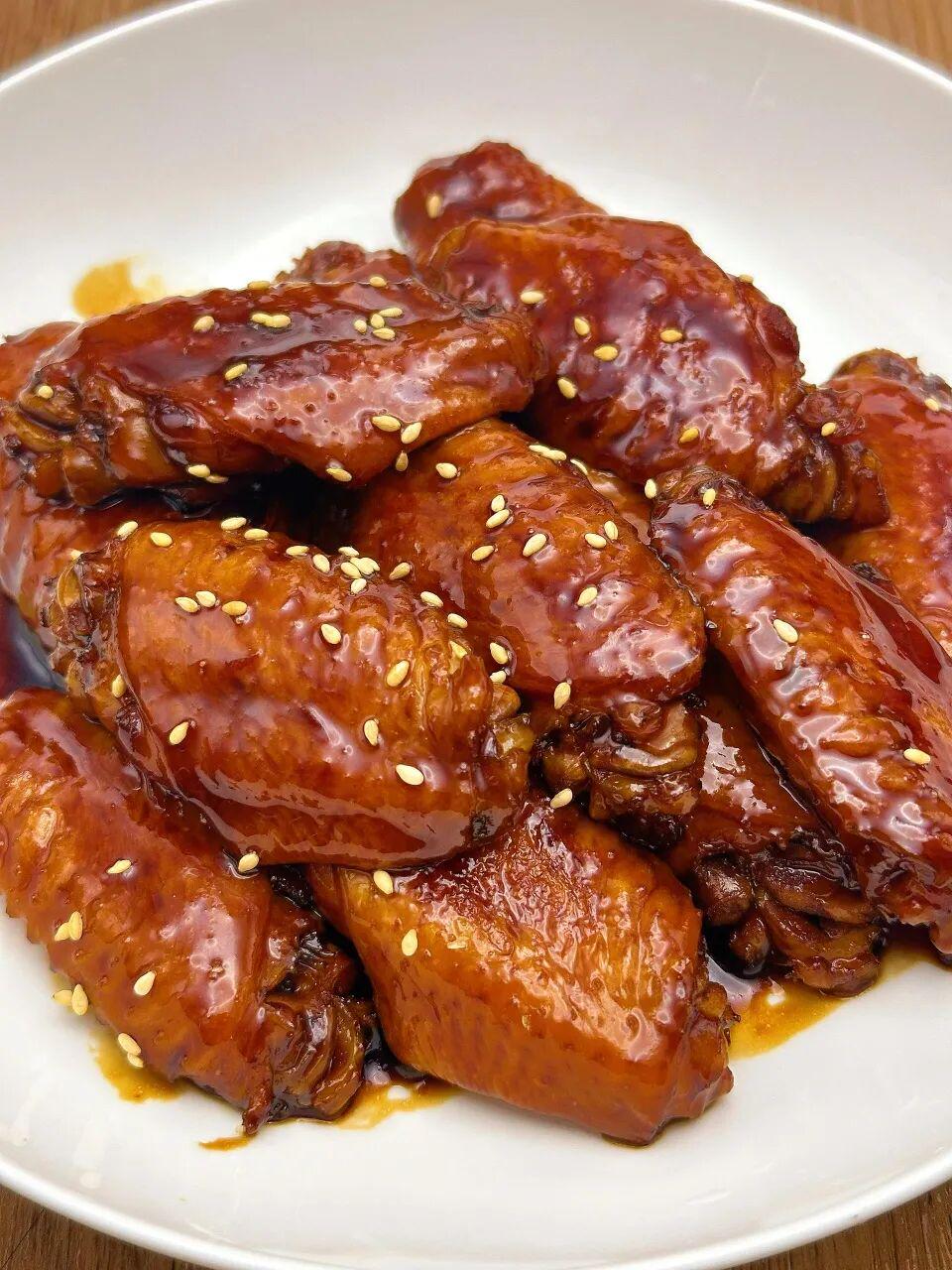 2、起锅烧油,油热放入鸡翅,小火煎至两面金黄,放入葱花、姜末、八角,加入1勺料酒、少许老抽,倒入一罐可乐,没过鸡翅,盖上盖子,小火焖10分钟,然后转大火收汁,撒入芝麻即可。