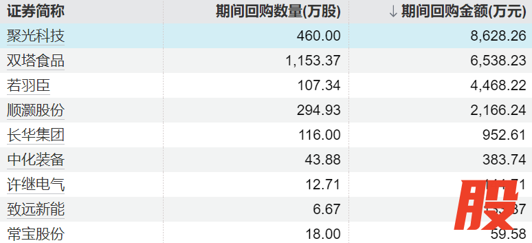9家上市公司股票获回购,聚光科技回购金额最高9家上市公司股票获回购,聚光科技回购金额最高