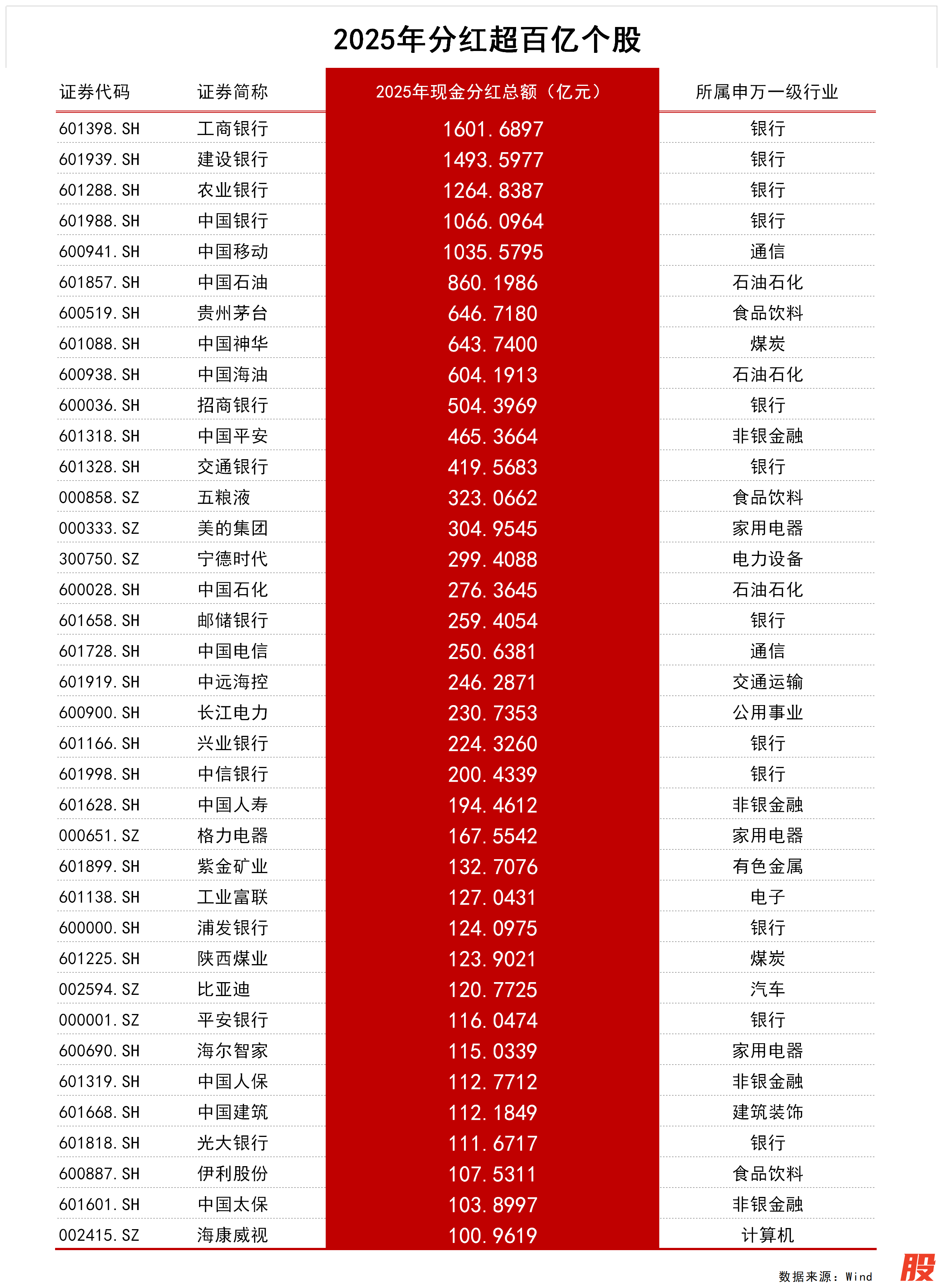 2025年A股上市公司分红超2.63万亿元 5股分红超千亿2025年A股上市公司分红超2.63万亿元 5股分红超千亿